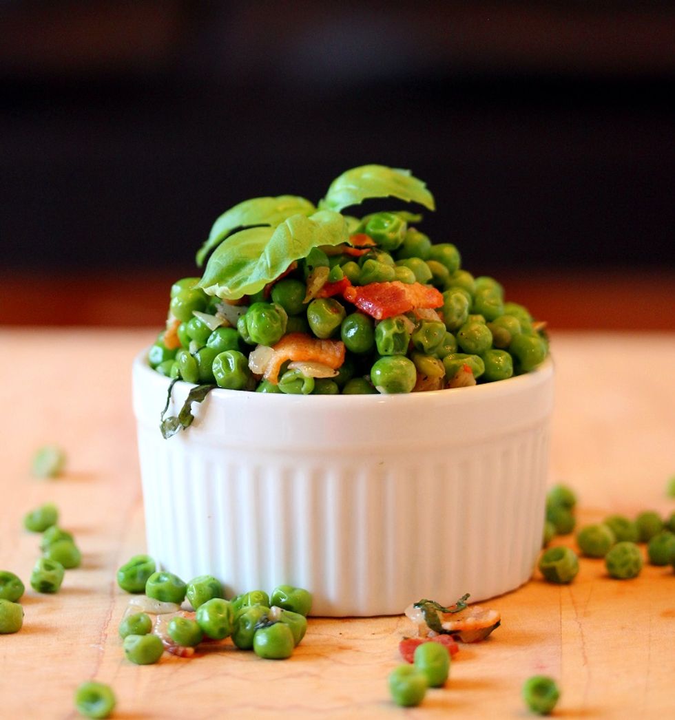 Place peas in a microwave safe dish, add a splash of water and cover with plastic wrap.