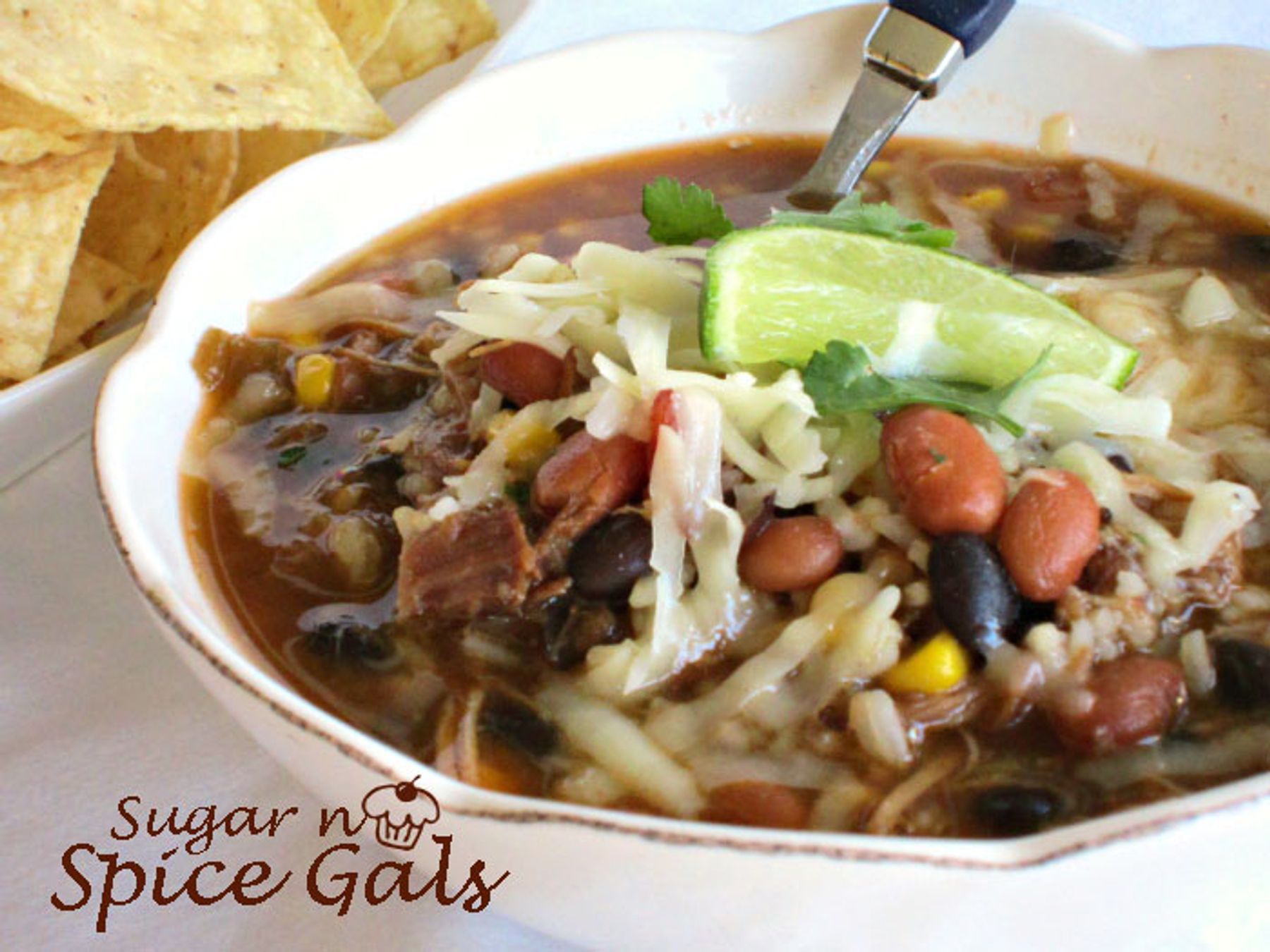 Came home to my mama making up a new dish. She was so excited about this one because she came up with it all on her own! A little combo of the classic Cafe Rio pork recipe mixed with some rice, corn and beans and VOILA she made one of the tastiest soups I've ever had. Squeeze a little lime over top and add some tortilla chips for an absolutley delicious meal! -Becky