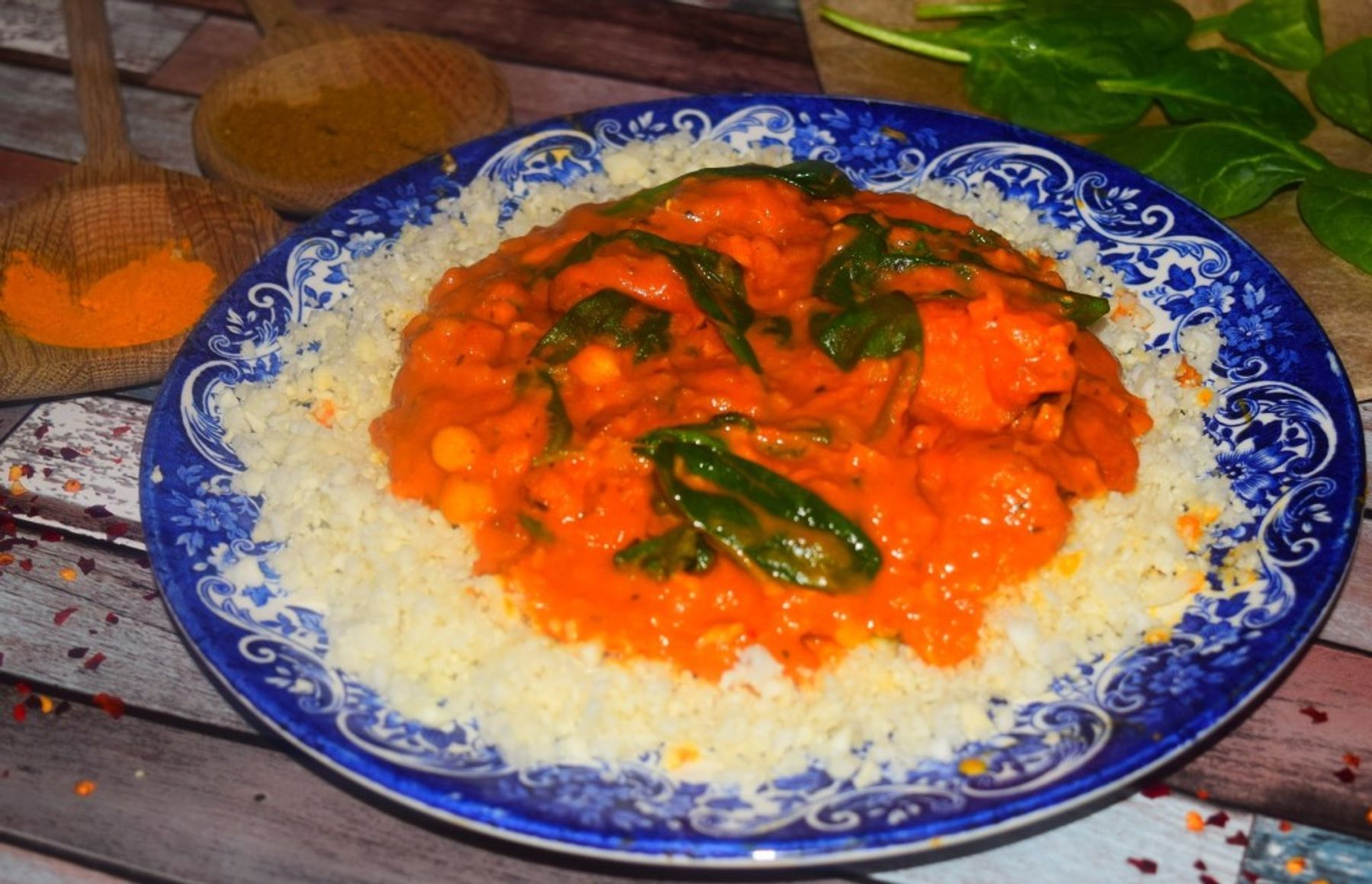 This delicious sweet potato and chickpea curry makes the perfect healthy dinner for when you have guests. You can serve it with either brown rice or try out one of my delicious cauliflower or broccoli rice recipes: Simple Cauliflower Rice Turmeric Cauliflower Rice Broccoli Rice Coconut and Almond Broccoli Rice I’ve served this with my simple cauliflower rice and it went down a treat. Hope you enjoy! :)