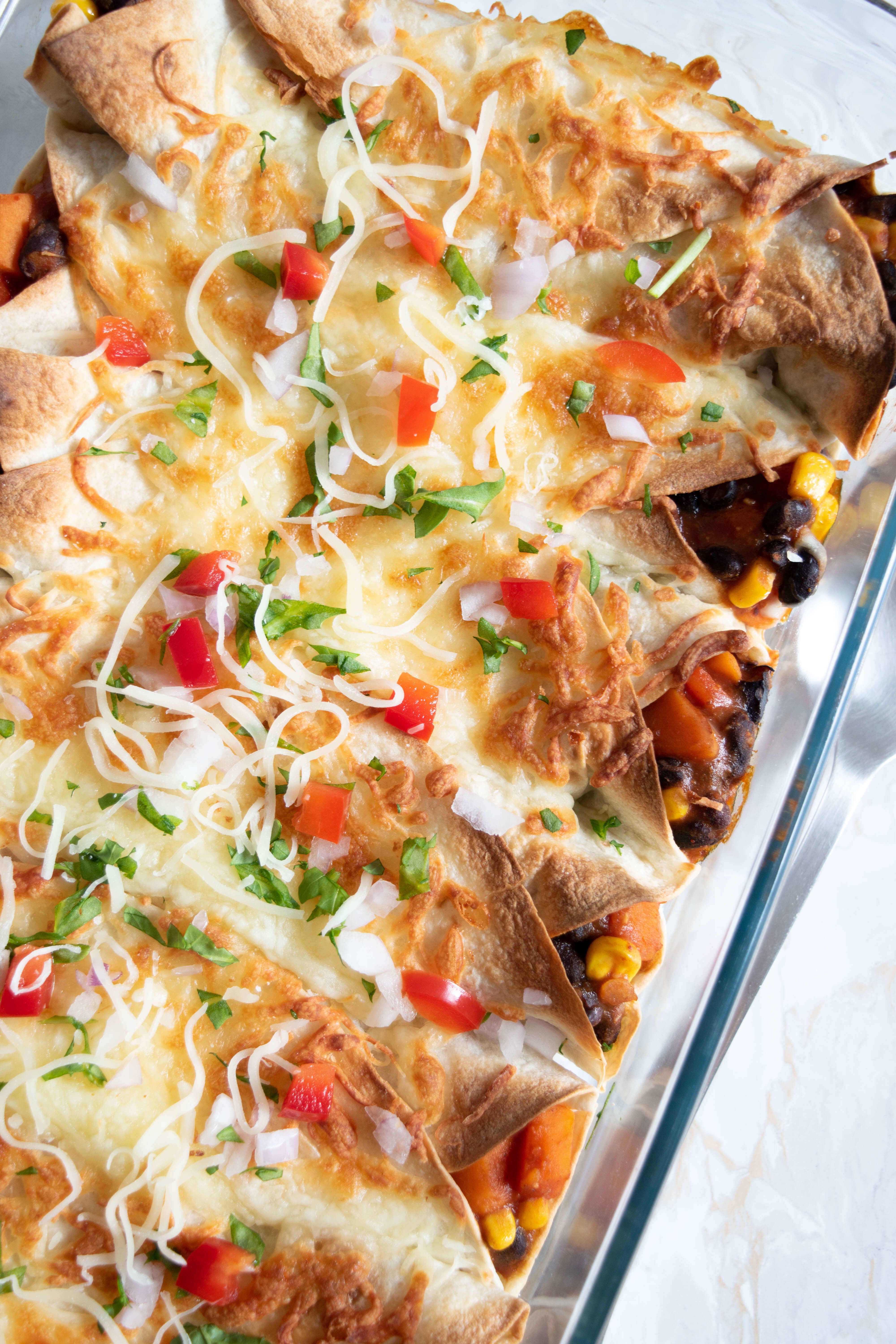 Check full recipe on my blog: https://stachio.co/Sweet-Potato-Black-Bean-Enchiladas/