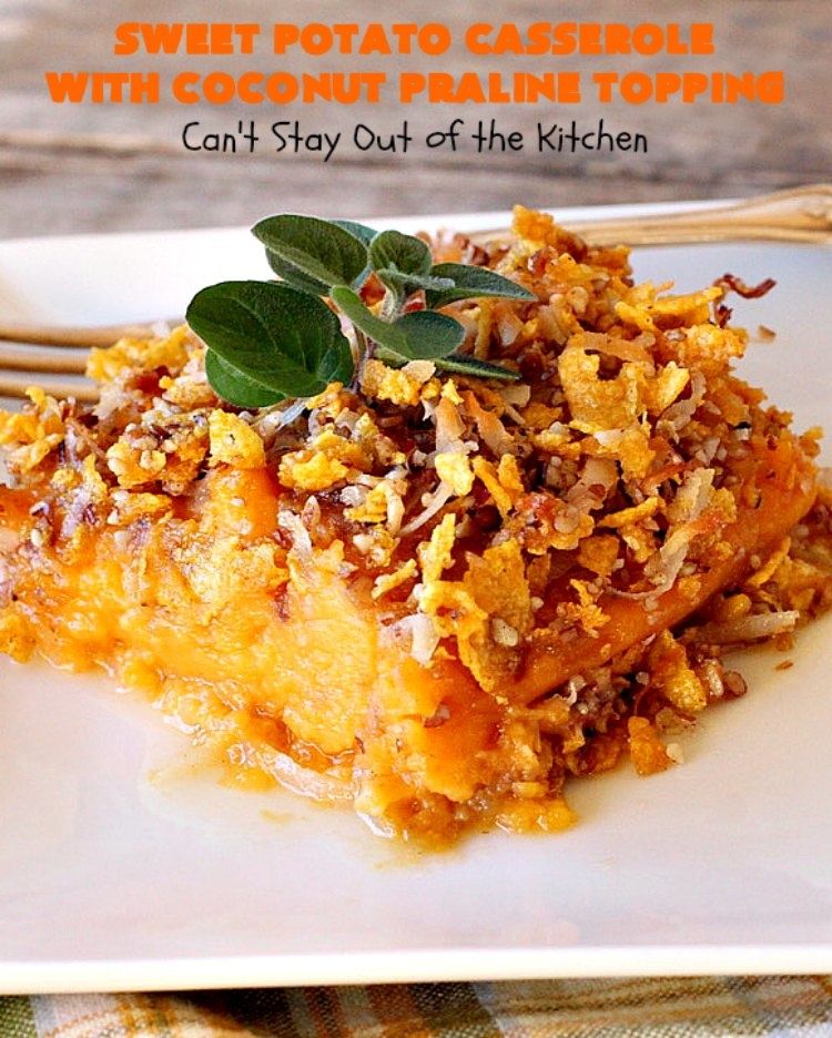 Sweet Potato Casserole with Coconut Praline Topping - Can't Stay Out of the Kitchen