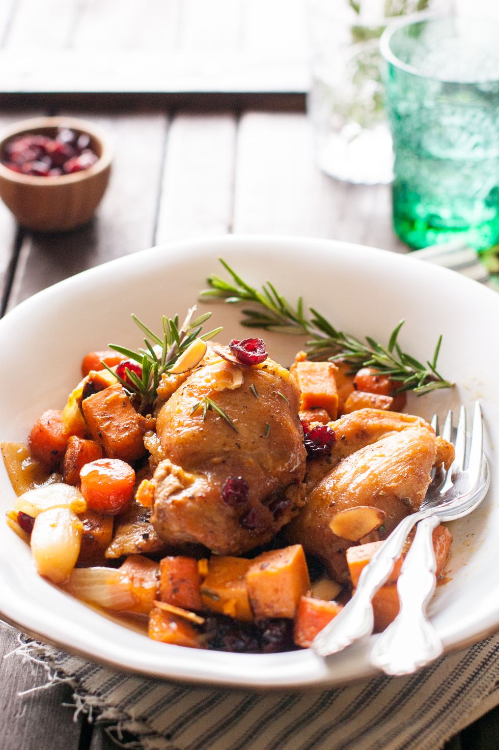 This dish is colorful and flavorful, as well as pretty easy to throw together. I added rosemary because it paired will with the flavors and added a nice pop of color. Make sure to use a pan that is oven-proof, as well as a lid.