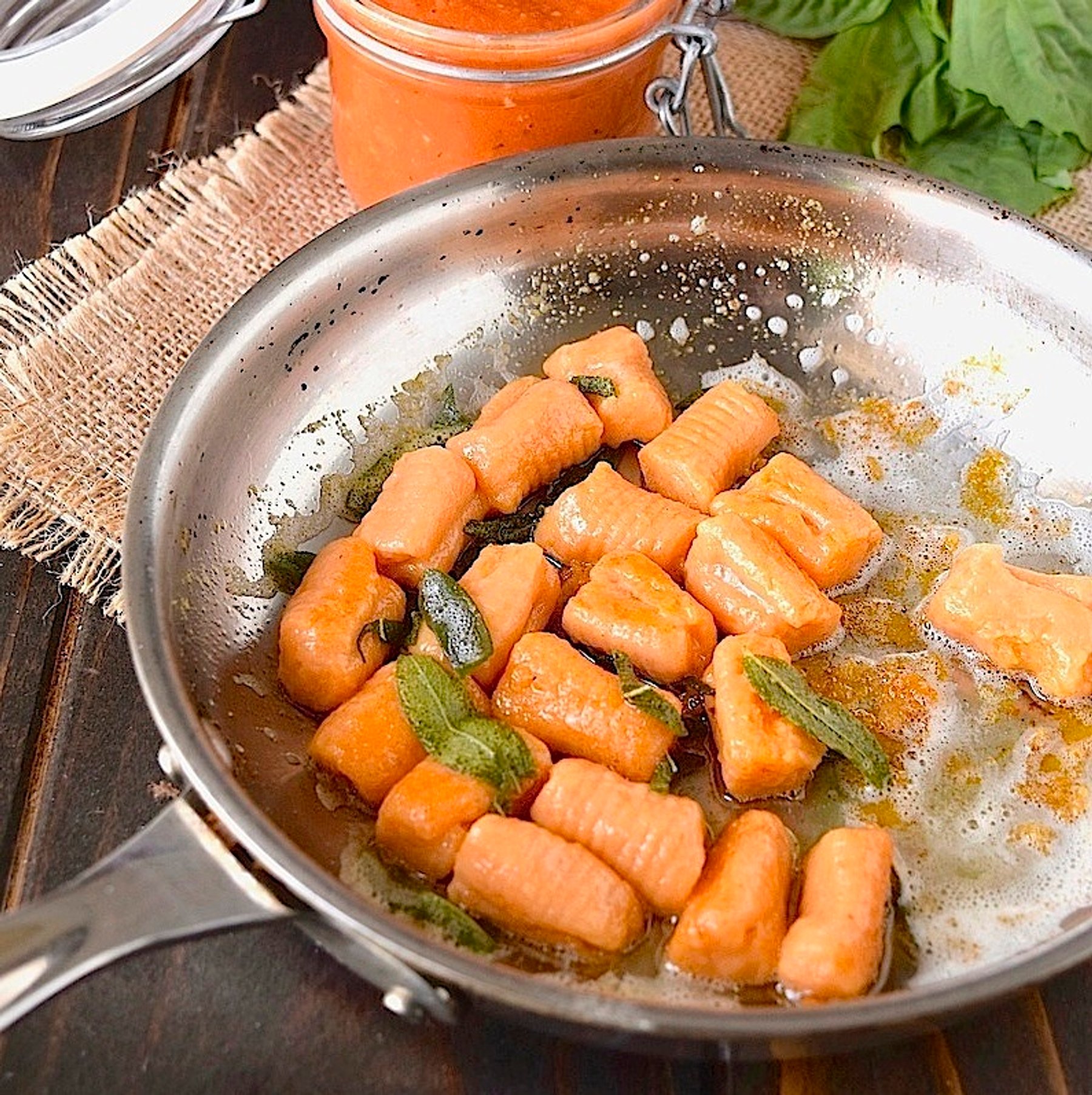 Sweet soft potato pillows with ricotta and hint of nutmeg, served in a sage butter. These gnocchi are the perfect comfort food.