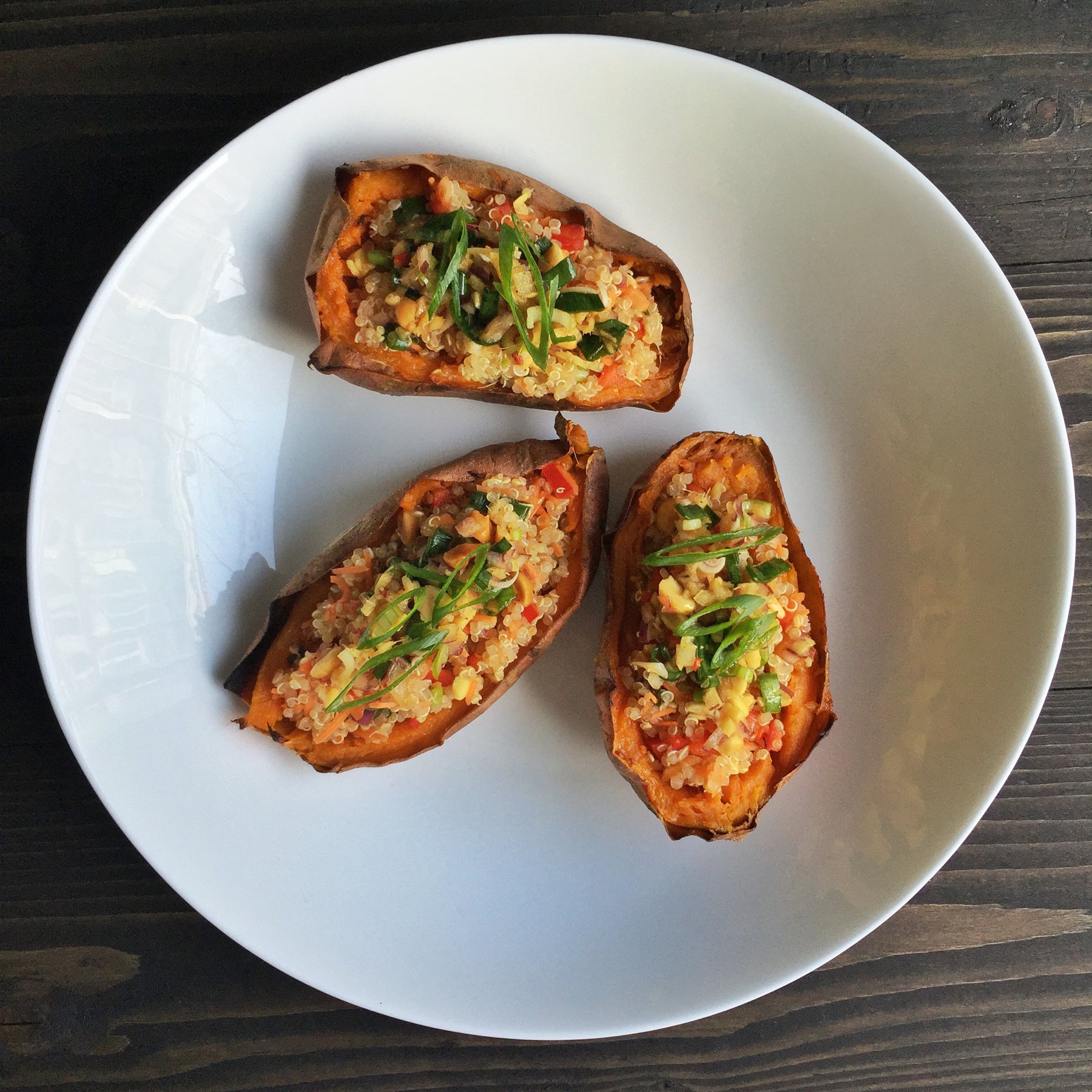 Sweet Potato Skins Stuffed with Thai Quinoa