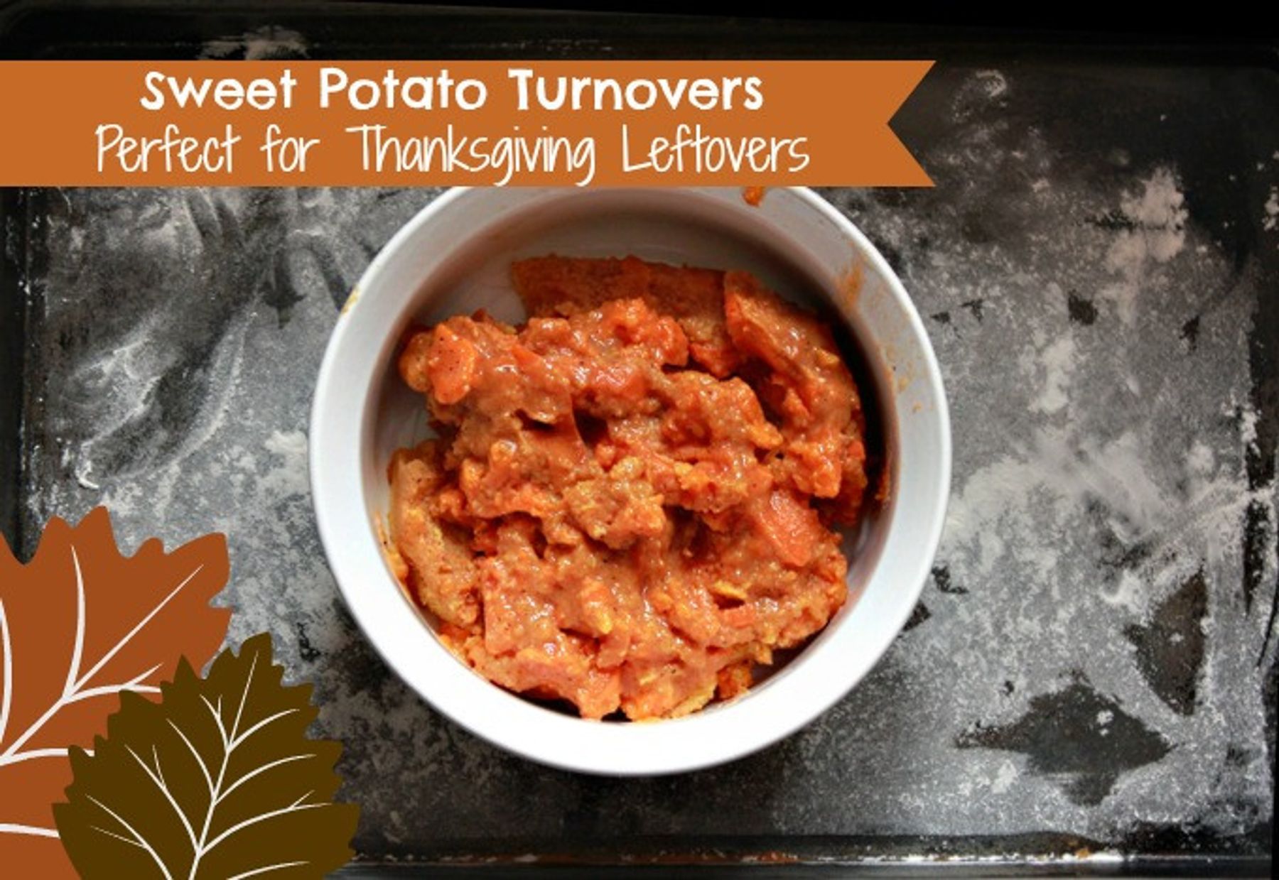 Roll out prepared pie crust. Using a 3-4 inch circle cookie cutter, make rounds for your turnovers. Plop a spoonful of your sweet potato mixture into the center and fold over...
