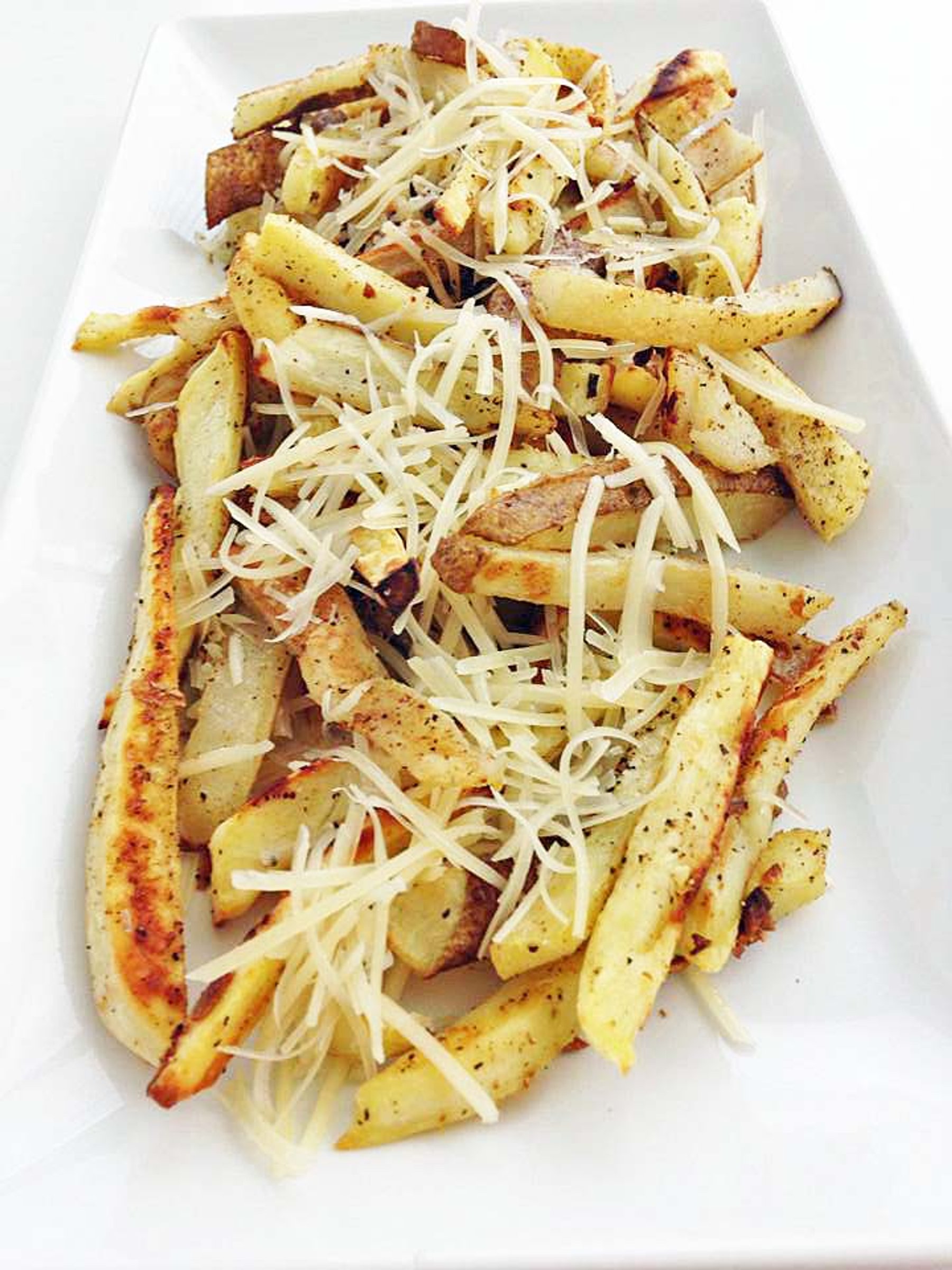 Sweet and Salty Fries Topped with Garlic and Parmesan Cheese