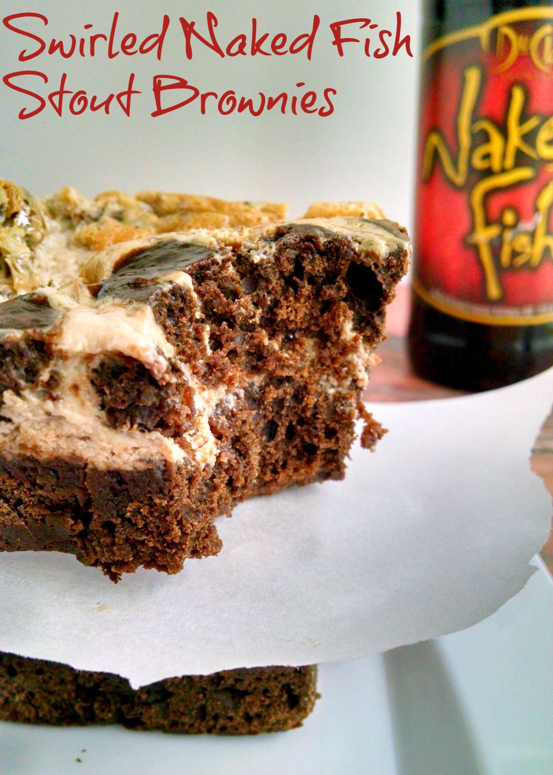 Delicious DuClaw Brewery Naked Fish Chocolate Raspberry Stout is the star in these fudgey, chocolate brownies swirled with raspberry cheesecake topping.