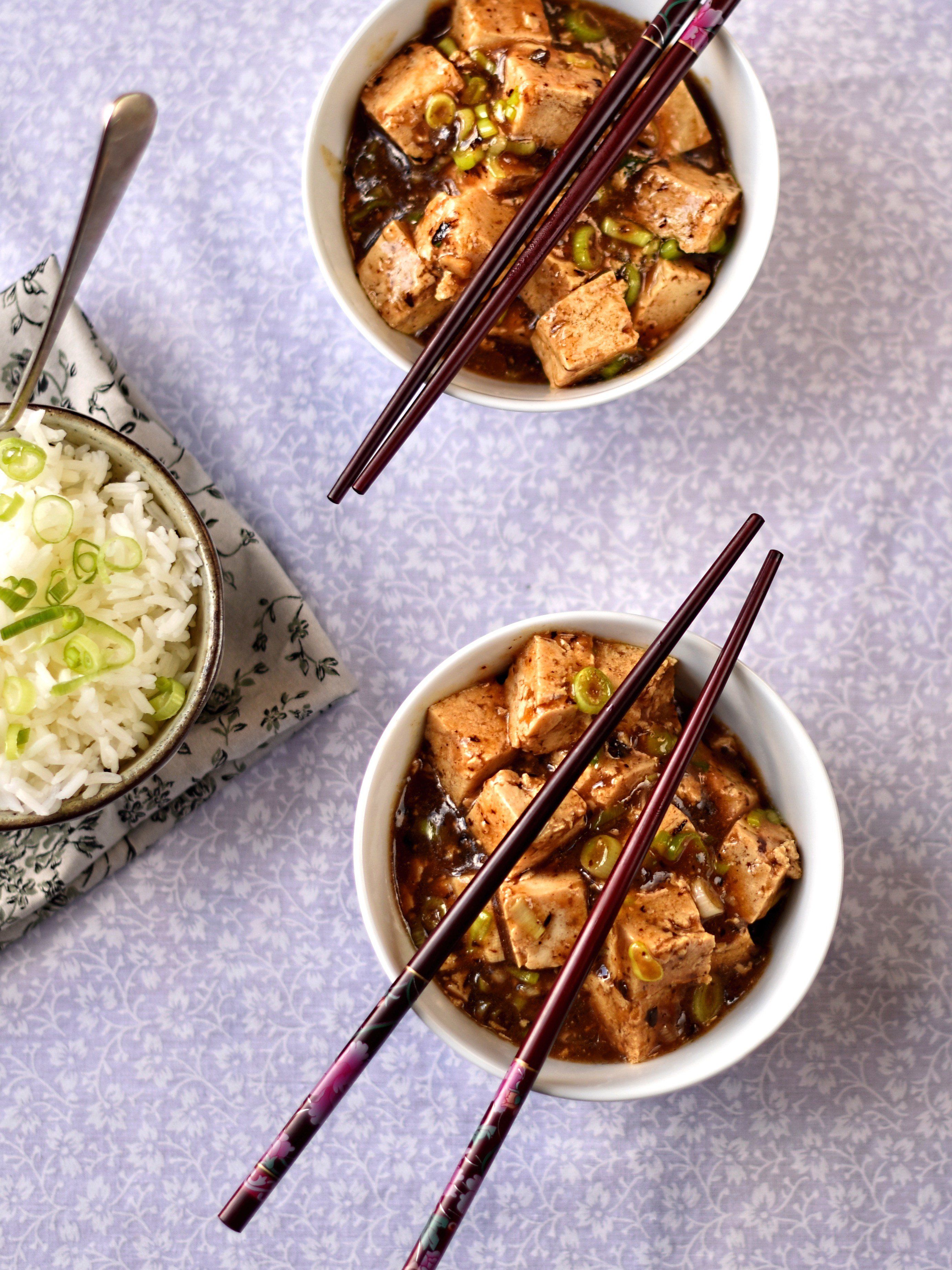 A vegan version of a classic dish called mapo doufu. Usually containing minced pork or beef, the dish translates, rather unappetisingly, as "pockmarked grandma's bean curd". Don't let that put you off: this is an intensely tasty and satisfying dish.Serve with steamed Thai jasmine rice and some wok-fried pak choi.
