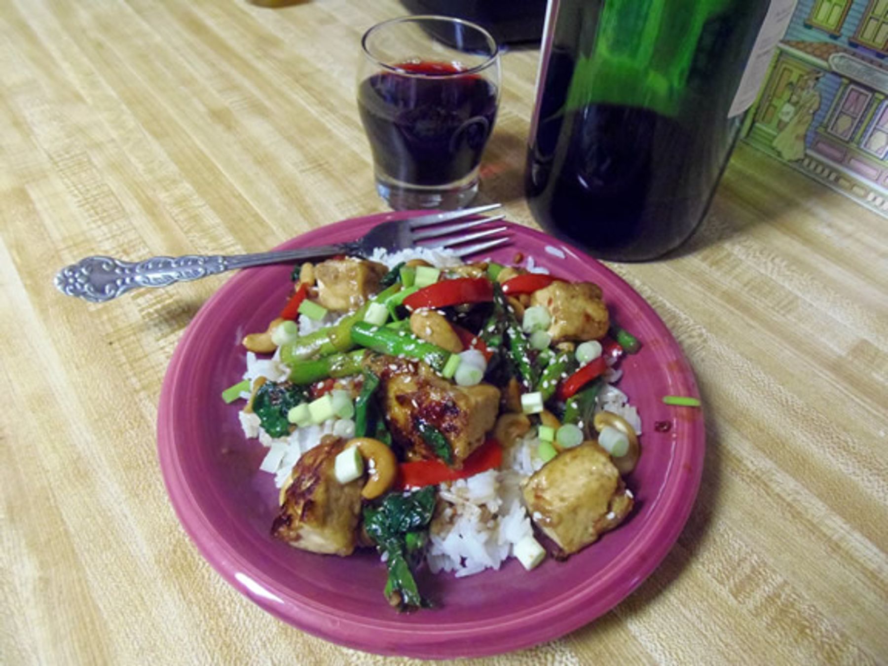 This stir-fry is amazing. It is full of flavor and fairly spicy. You can tone down the heat by leaving out the red pepper flakes. These simple ingredients are elevated with this tasty sauce. Serve with a spring roll for a filling meal.