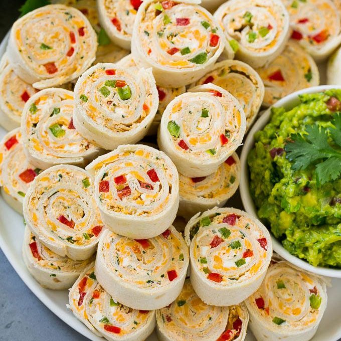 These taco pinwheels are made with chicken, taco seasoning, cream cheese and peppers, all rolled up inside tortillas. An easy make-ahead party appetizer!
