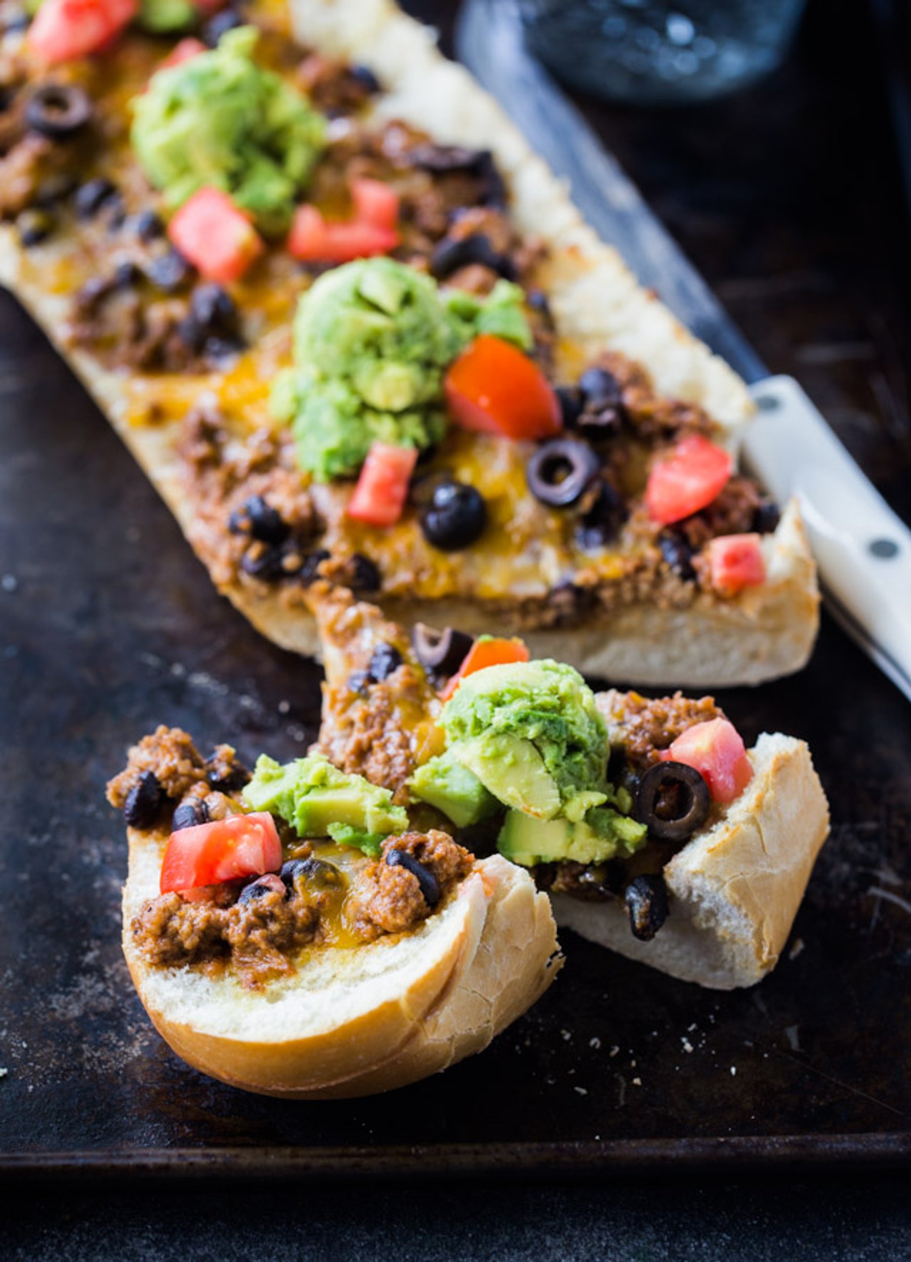 This Taco Pizza takes less than 30 minutes to make and there is no dough required for this recipe. You can even customize it for the kids by leaving off the black olives or avocados. To step it up a notch on the heat factor just add some sliced jalapenos or sprinkle some red pepper flakes. Just make sure you keep the loaves separate to keep the kids mouths from burning. So, when Friday comes around and everyone is craving pizza, break out the ingredients for this simple No Dough Taco Pizza dis