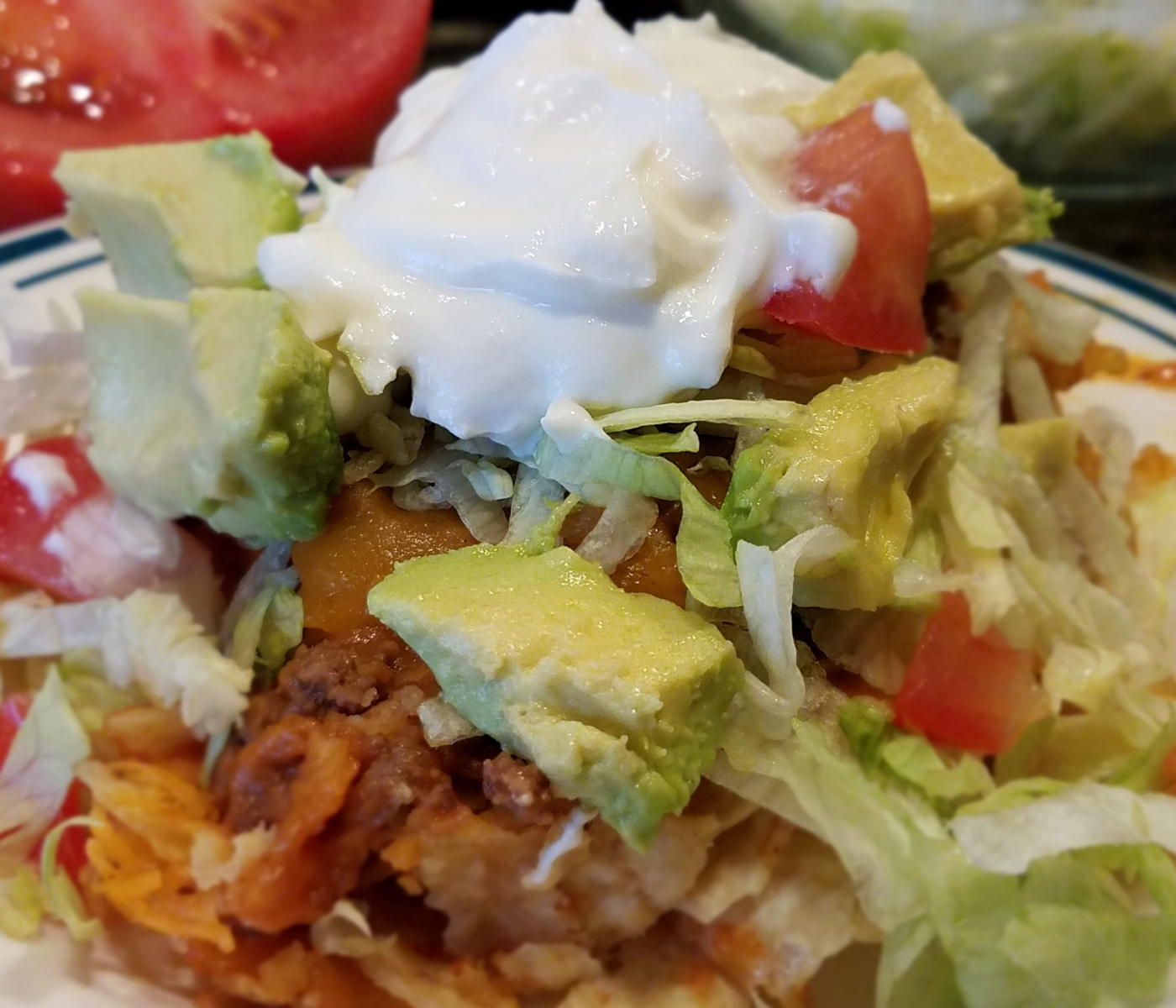 This Taco Salad Casserole is an easy weeknight meal filled with seasoned ground beef, lots of cheese, crunchy tortilla chips and all the taco fixings you want!