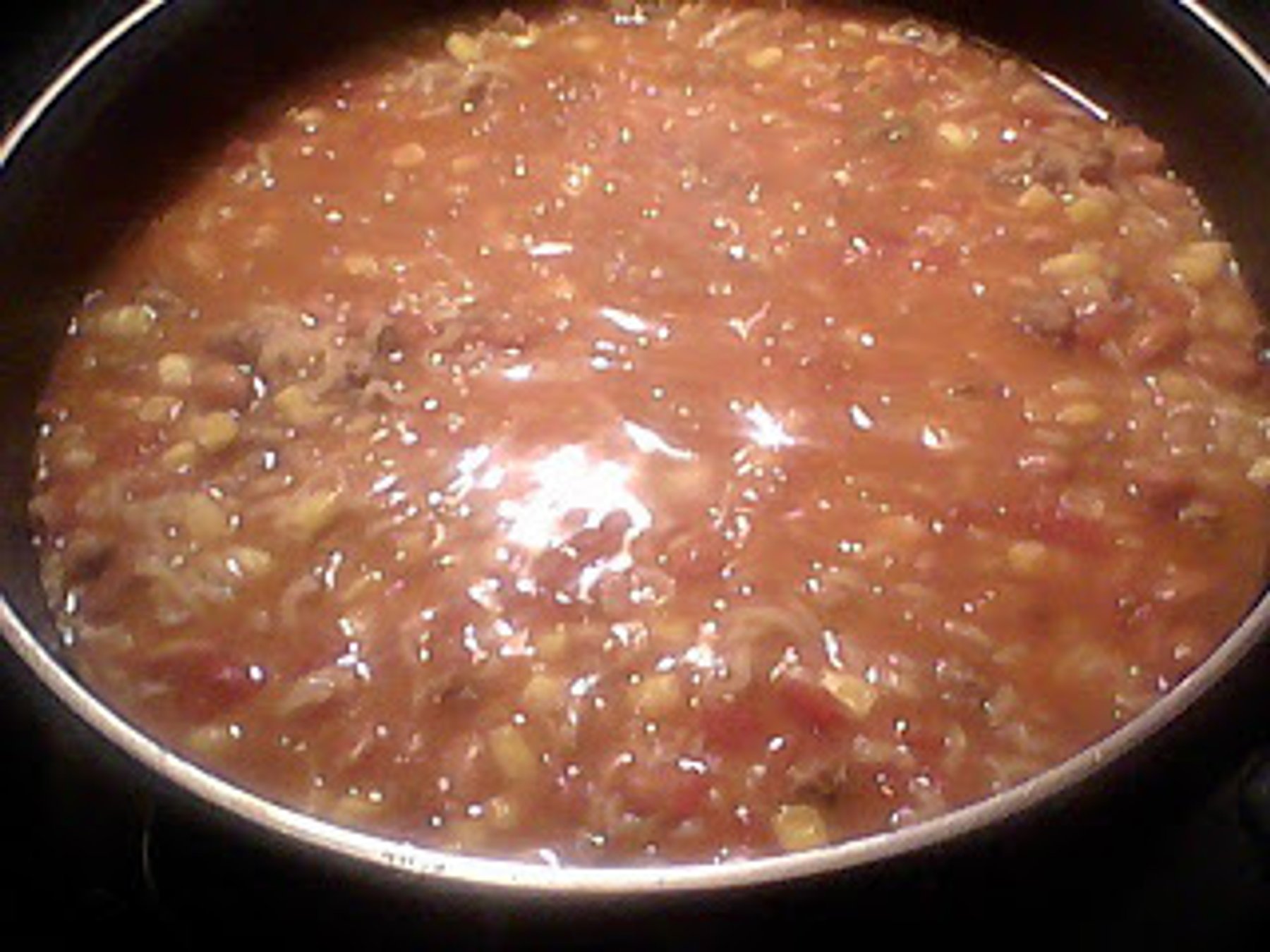 Brown the ground beef in the pot & add onion & cook over low heat till they are translucent. Drain off any remaining oil. Add ALL other ingredients (except the noodles from the ramen noodle soup). 15...