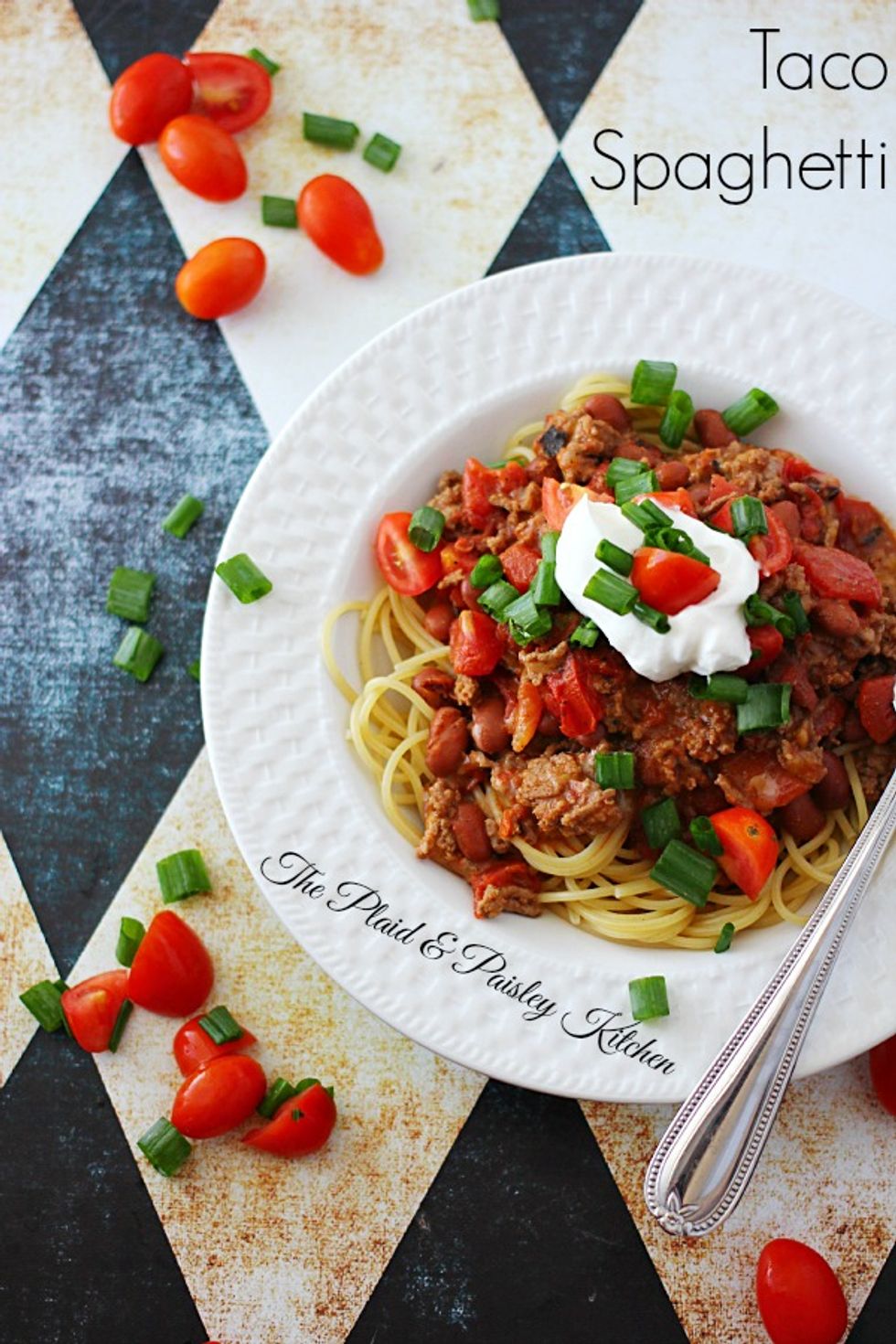 Hello my favorite dinner ever! I love to make new and fun twists on Taco Tuesdays. Tacos and spaghetti are pretty much a weeknight staple in any family home. So why not combine the two and make a whole new sensation? Taco Spaghetti is going to be a new classic in your kitchen!