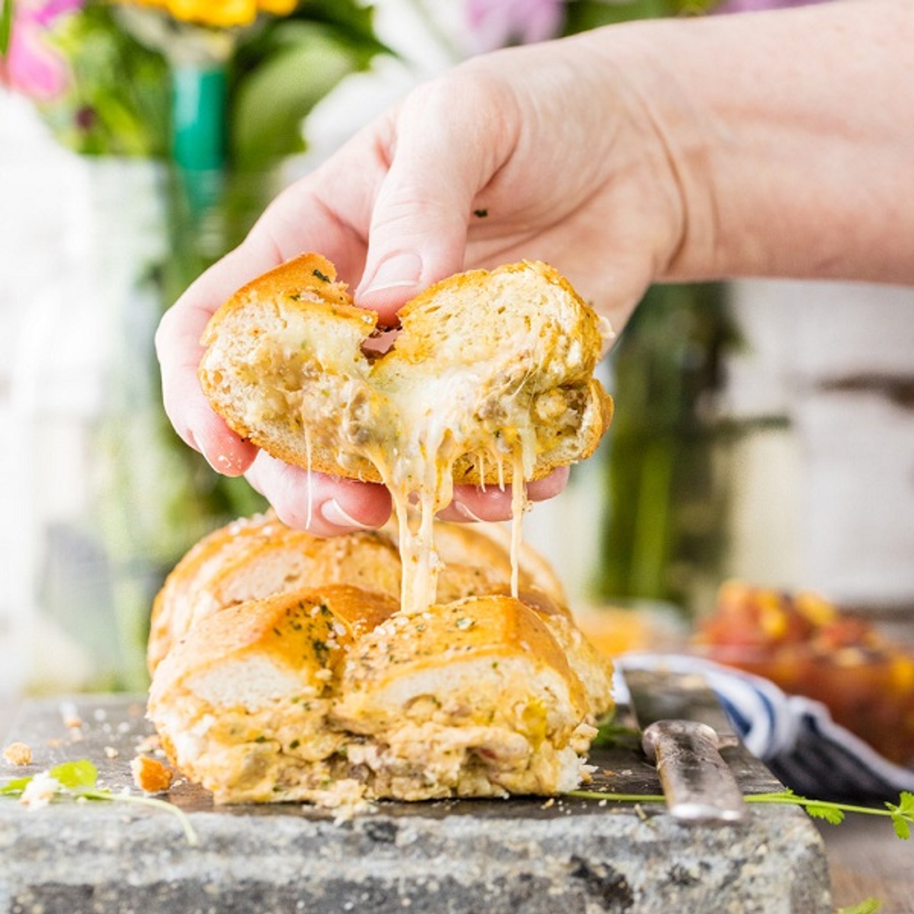 Taco Stuffed French Bread Baguette! This is the show-stopper appetizer your party has been looking for!