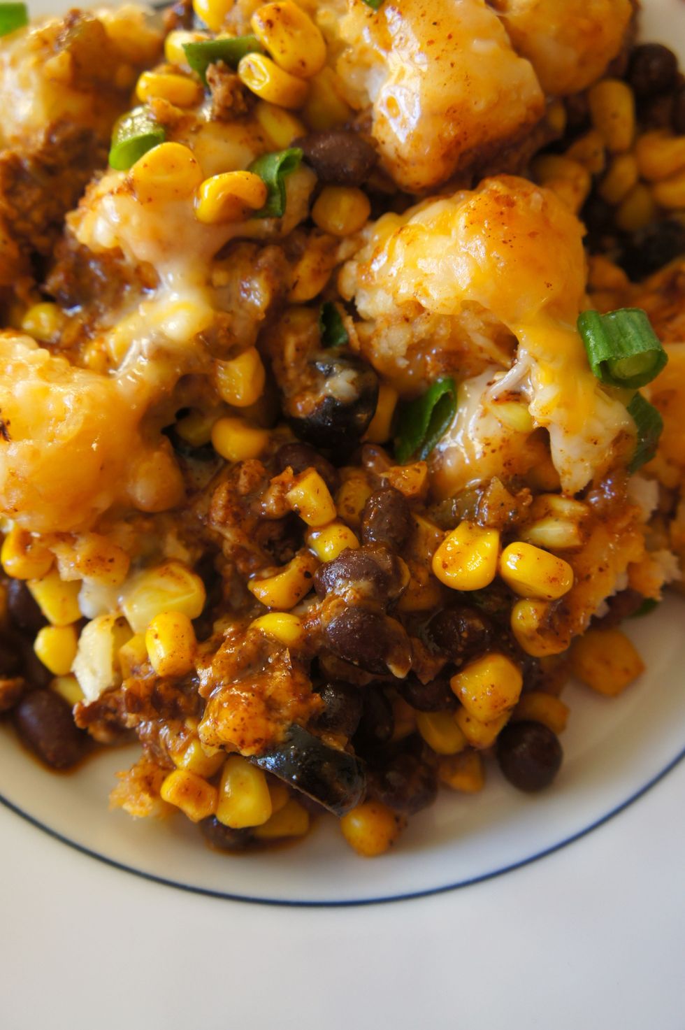 The love of tater tot casserole is combined with some Mexican flavors.