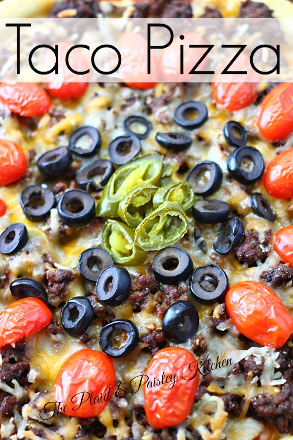 Taco Pizza ~ The Plaid & Paisley Kitchen ~ No more Taco Tuesday Blues. Easy and fun! The whole family will go nuts for this!