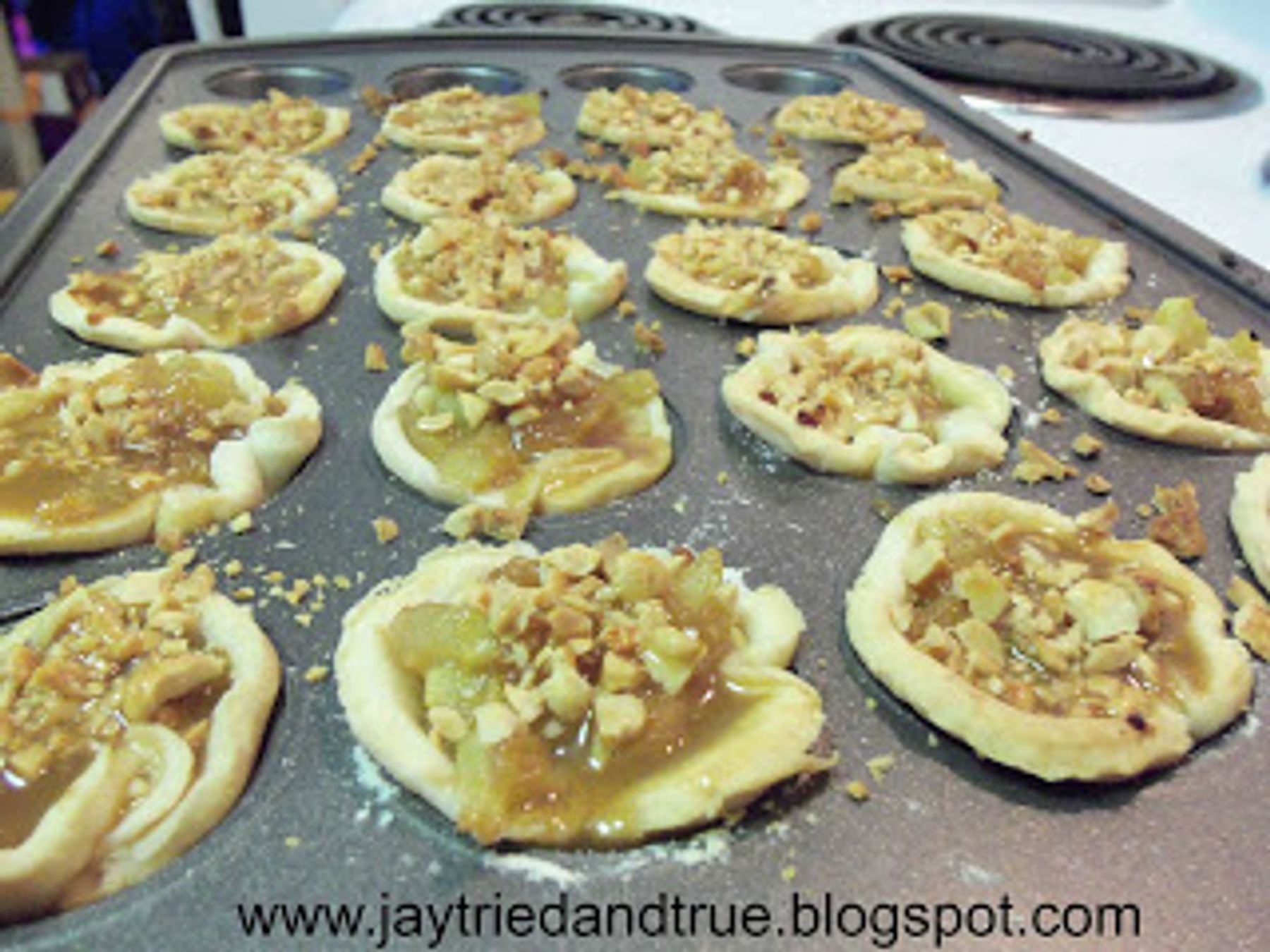3. Combine apples, ½ cup caramel sauce, and flour. Mix well.