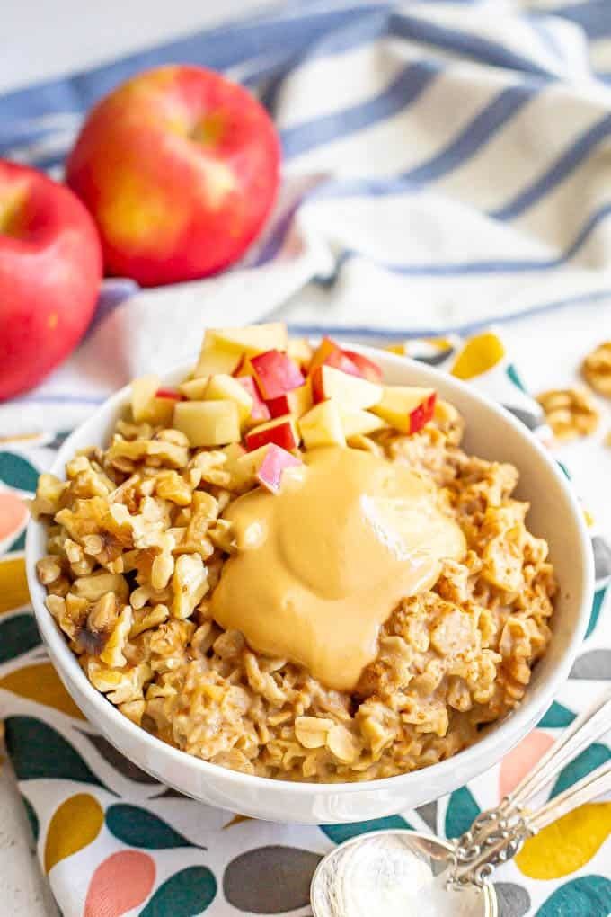 Peanut butter oatmeal with cinnamon and apples - Family Food on the Table