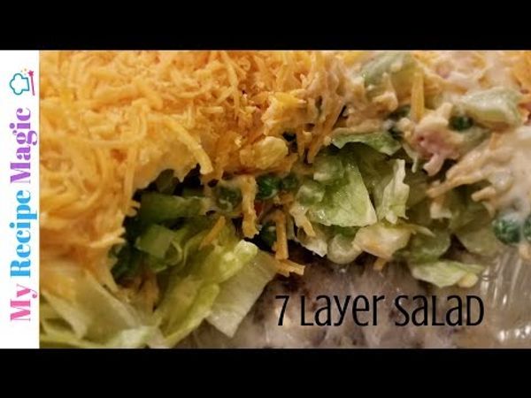 This salad is a family favorite; perfect for big gatherings! The great thing about it is that it can be made ahead. This salad is 7 layers of yumminess!