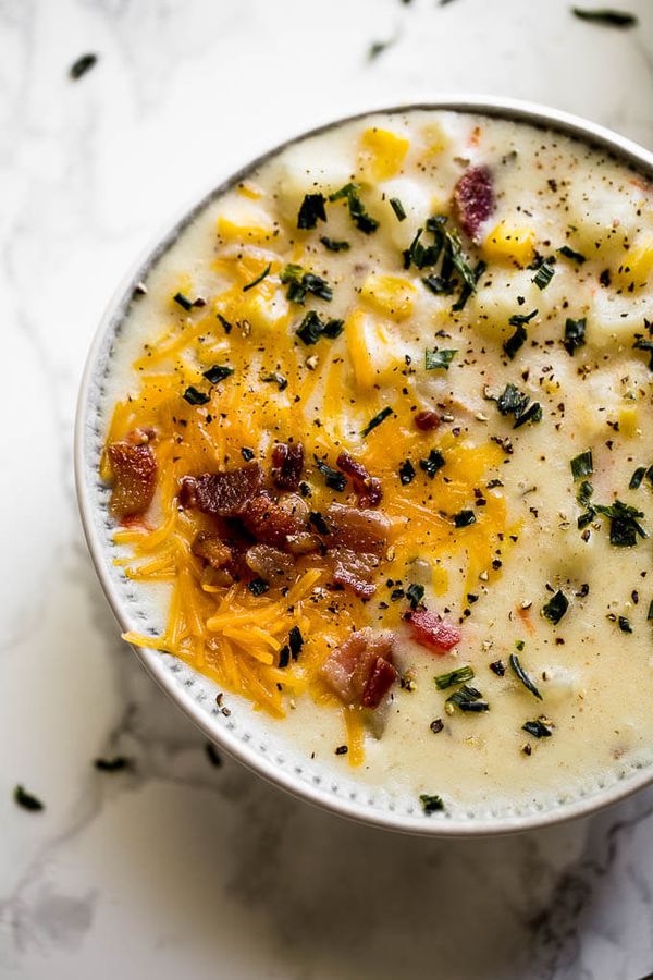 Instant Pot Cheesy Corn and Hashbrown Chowder - Amy in the Kitchen