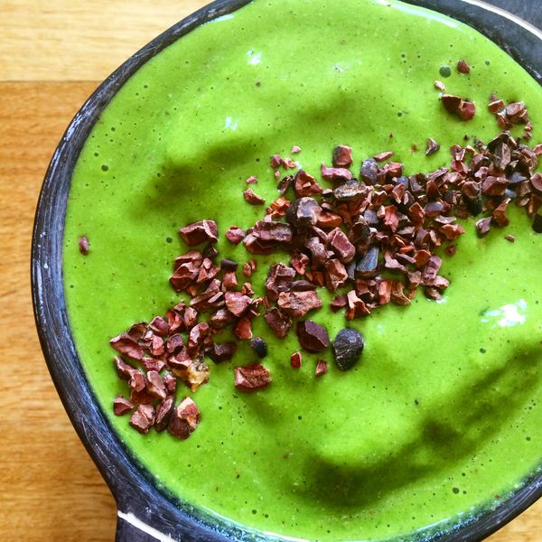 A decadent green smoothie with a hint of cocoa. Kids will love it too.