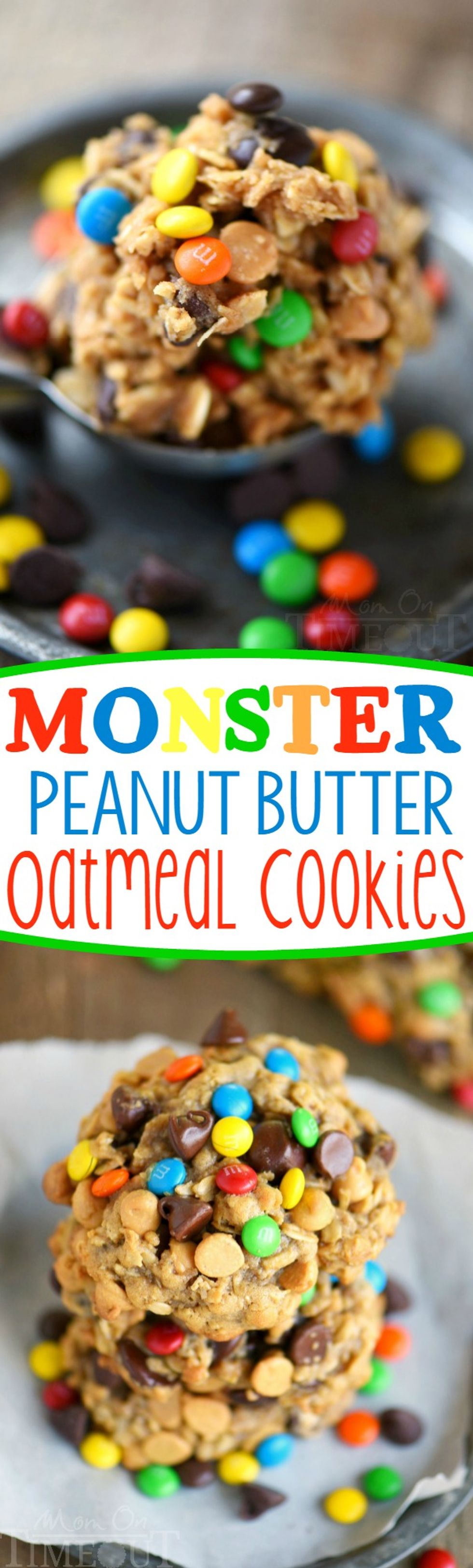 These Monster Peanut Butter Oatmeal Cookies have it ALL! Each bite is filled with chewy oats, peanut butter, chocolate chips and M&M’s! Truly the perfect cookie!
