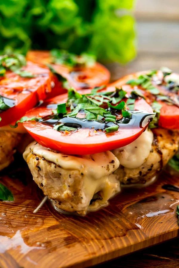 Chicken Caprese is a delicious, healthy dinner recipe bursting with flavor. Grilled Chicken Breast that's seasoned then topped with fresh mozzarella, a slice of ripe tomato, basil and balsamic reduction. It can be made on a gas grill or on the stovetop with a grill pan for a quick and easy dinner recipe!