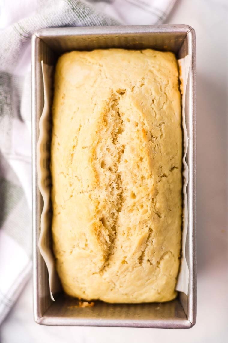 - Place dough in a greased 9x5 inch loaf pan. Pour melted butter of the bread dough.