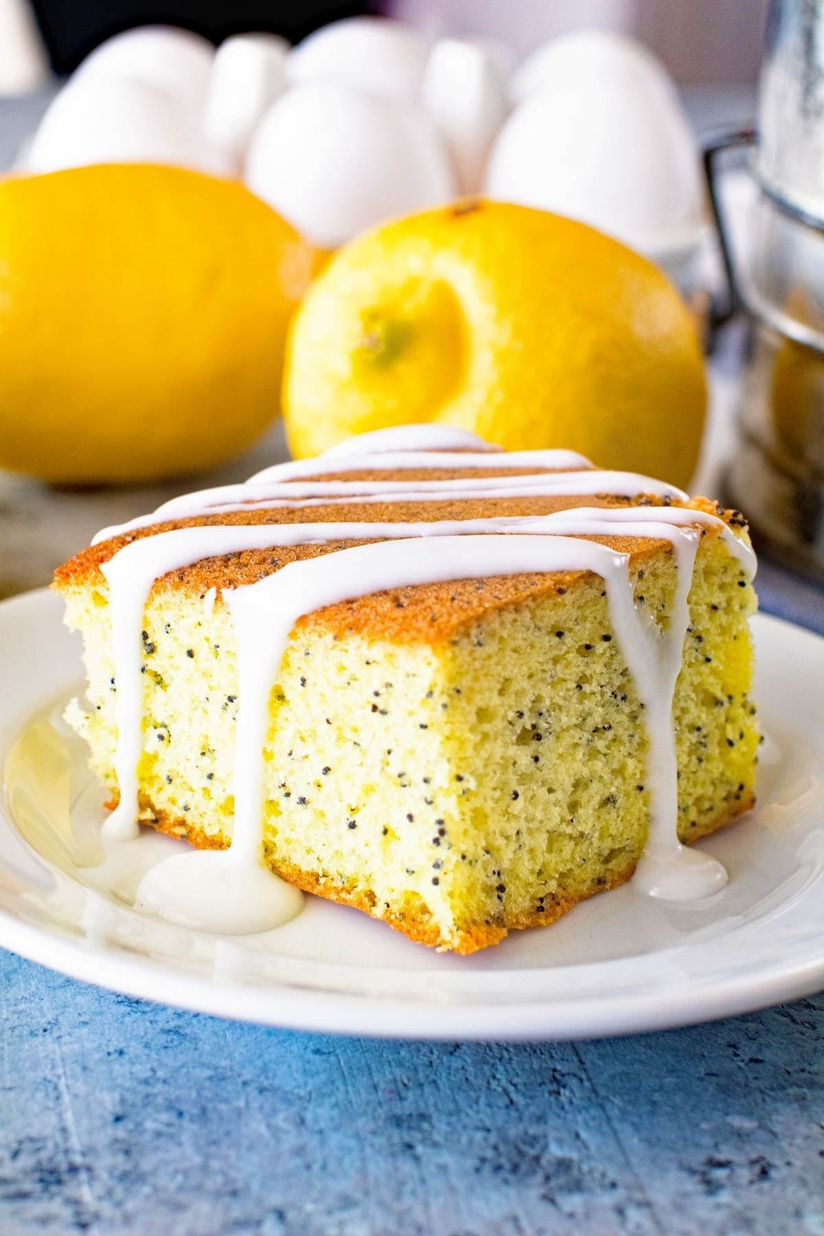 This Lemon Poppy Seed Cake starts with a box lemon cake mix and is dressed up with the addition of lemon pudding mix and a delicious lemon glaze. It's light, fluffy and delicious, plus it's easy! No one will know it started with a box mix.