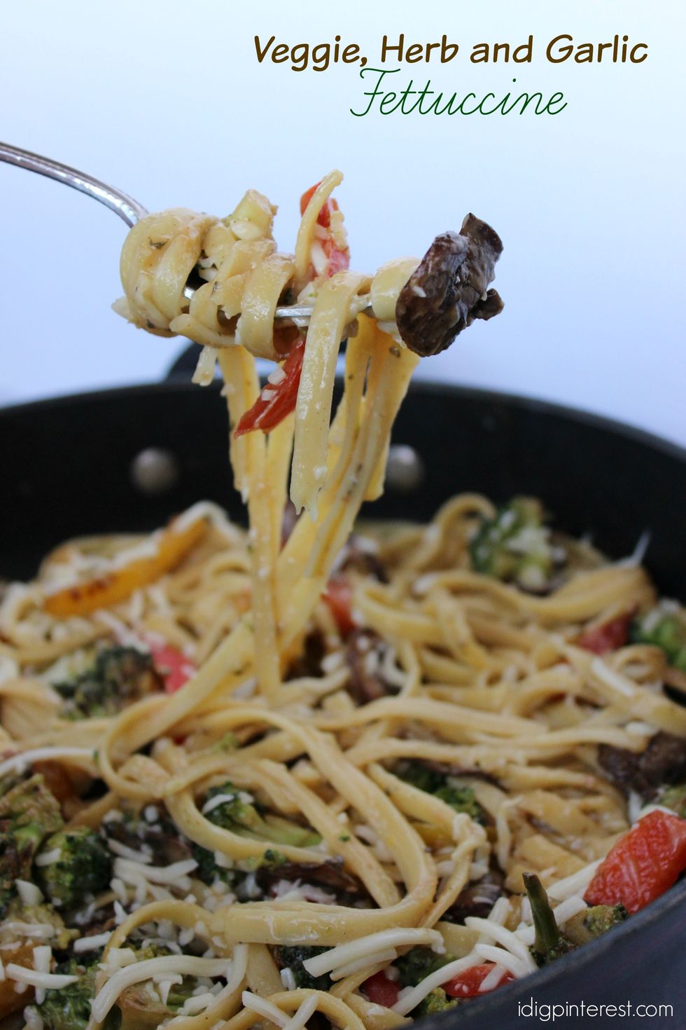 You'll be the dinnertime hero when you present this beautiful and flavorful Veggie, Herb and Garlic Fettuccine! It's mostly made in a skillet and is creamy and delicious!