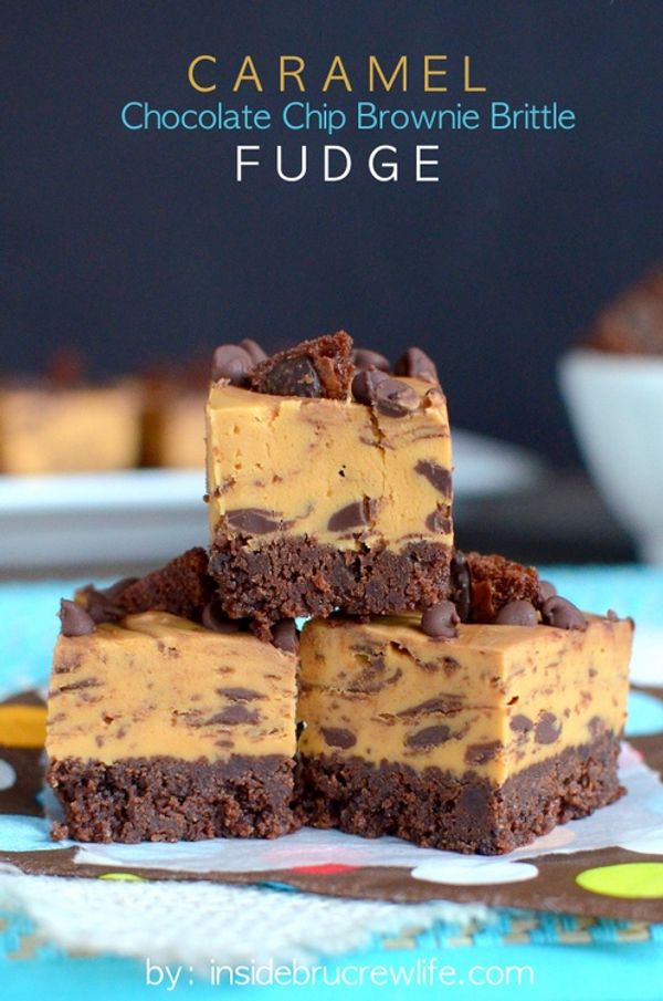 A layer of Brownie Brittle makes this caramel fudge a decadent choice to make. Perfect for any holiday dessert trays!