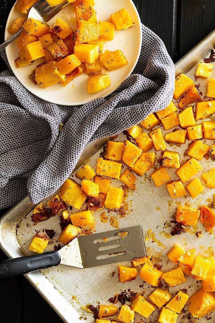 - Peel, seed, and cut the butternut squash into 1/2"-3/4" cubes. (Try to get them all about...