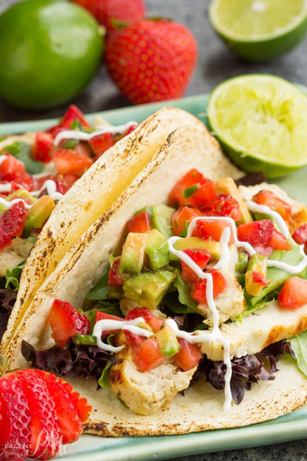 Mojito Grilled Chicken Tacos recipe with Strawberry Avocado Salsa is an easy, simple,& refreshing marinade adding a unique flavor combination to chicken.