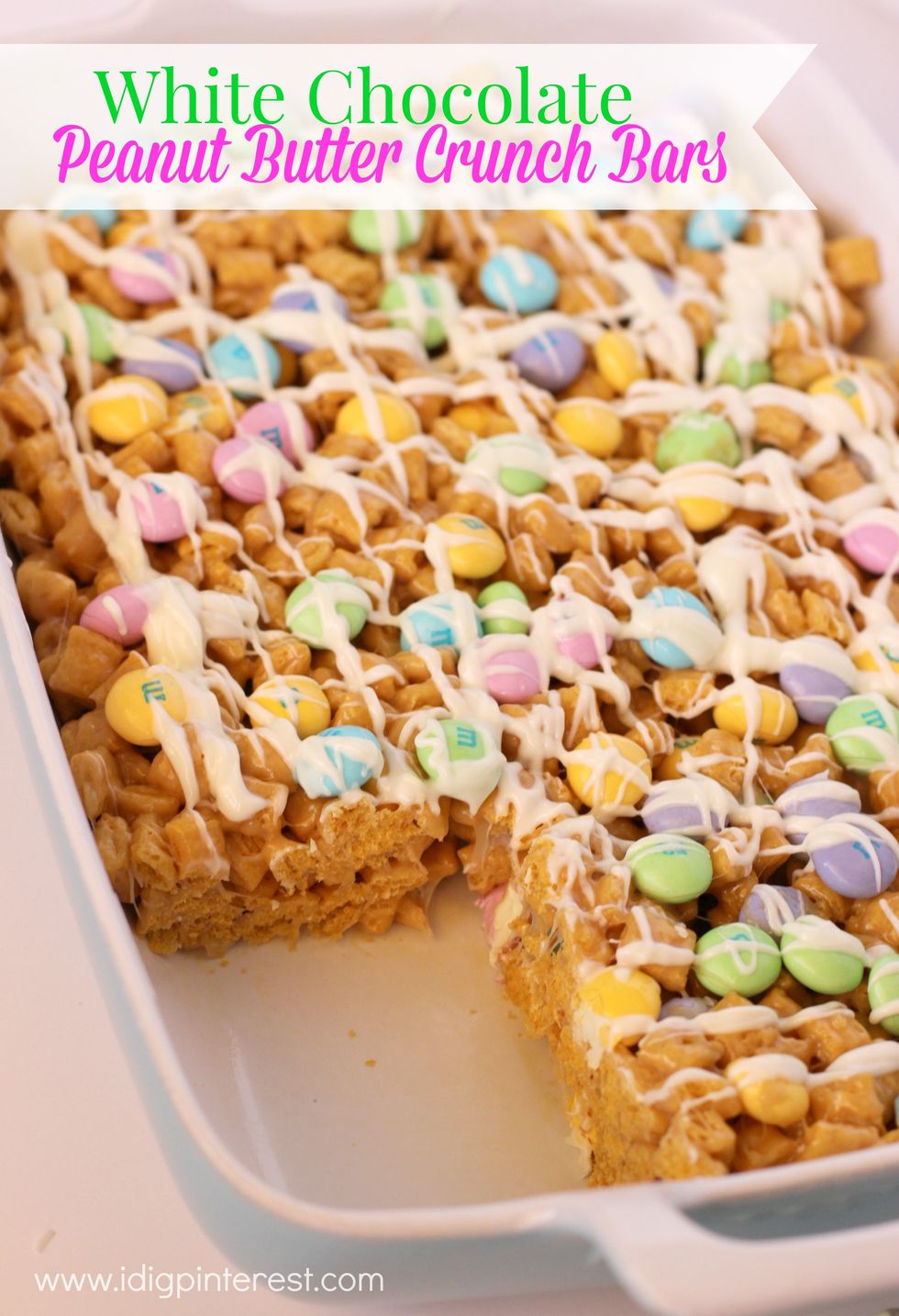 These White Chocolate Peanut Butter Crunch Bars are both pretty and scrumptious! They combine two of my favorite things...white chocolate and peanut butter, and are made with Cap'n Crunch Cereal! This is a great recipe to enlist kids' help too! Let them count marshmallows, measure, stir, press and sprinkle. Swap in chocolate seasonal candy of your choice!