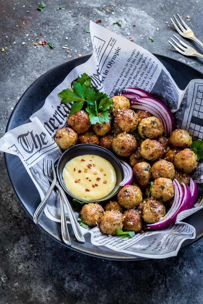 Getting tired of the same homemade meatball recipes? This recipe calls for chicken! These easy homemade chicken meatballs are the answer to the ordinary meatballs you've been preparing for ages. This recipe can be served at events and parties as an appetizer or a topping for your favorite pasta. This fried meatball recipe is topped with a luscious mustard-mayo sauce that heightens the chicken flavor and the spices. This is also a great meatball dinner idea for kids that are picky eaters and are tired of the same beef or pork meatballs. This is also a great lunch or dinner party potluck dish.