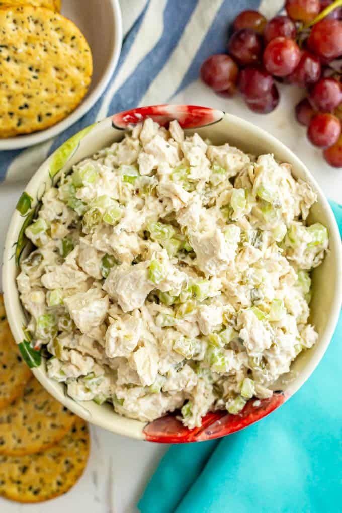 This Chinese chicken salad is healthy, savory, refreshing and delicious! This recipe is better than takeout! It's ideal for weekly meal plan rotations. Make a DIY salad kit that's ready to go when you need it: just add lettuce, previously-prepped ingredients and toss. Make this easy salad recipe in only 15 minutes!