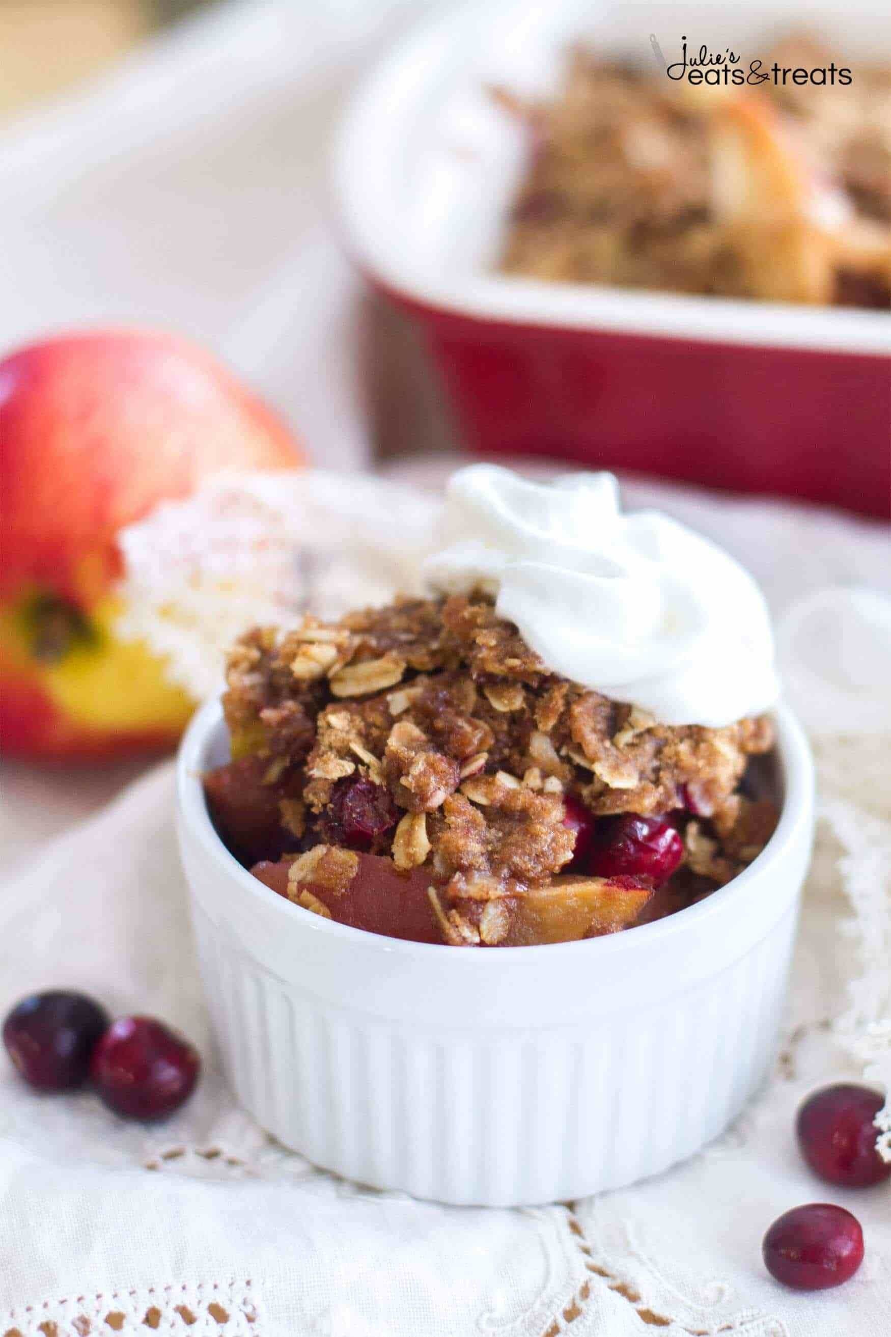 Easy Cranberry Apple Cobbler is filled with sweet apples and fresh cranberries, and is topped with the best brown sugar cinnamon crumble! This Apple Cranberry Crisp with a Brown Sugar Cinnamon Crumble is a simple dessert perfect for the holiday season!