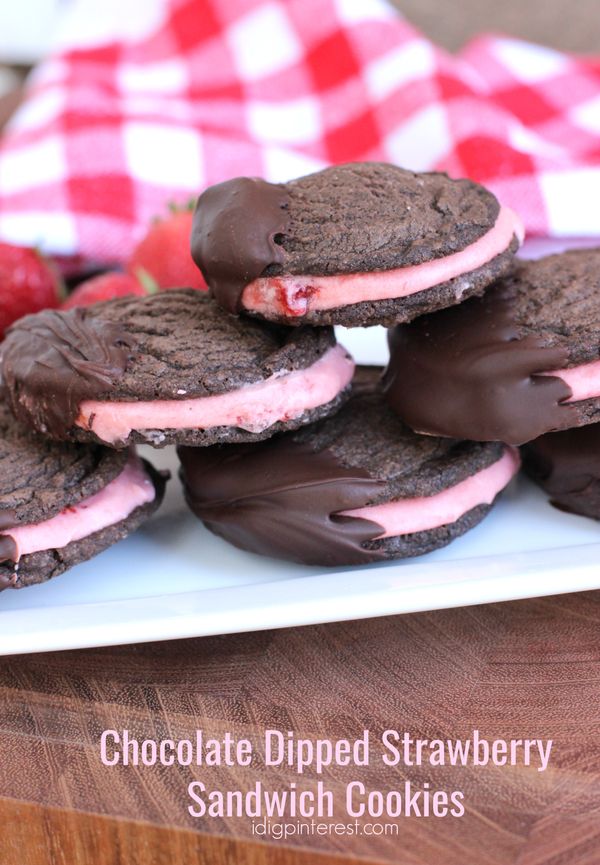 If you’re a fan of chocolate dipped strawberries, you’ll do flips for these brownie sandwich cookies with fresh strawberry buttercream, dipped in melted chocolate! Perfection in a dessert!