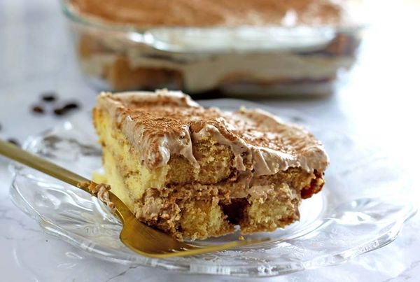 This Boozy Tiramisu starts with a frozen pound cake and your choice of spiked coffee. An easy, no-bake dessert that won't heat up the kitchen this summer and it's easy to make ahead!