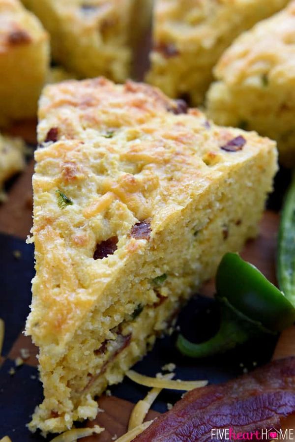 Bacon Cheddar Jalapeño Cornbread is moist, tender, and loaded with flavor...the perfect accompaniment for all of your favorite soups, stews, and chilis! So...I'm posting this recipe today because cornbread accompanies soup, and soup is associated with cold weather, and maybe if we build it, they will come. Or, in this case, maybe if we act like fall temperatures have arrived, they finally will. Because, Y'ALL. It hit 100 degrees around here this past week. IN MID-OCTOBER. So if it's not too much trouble, everyone in central Texas please make a skillet of this Bacon Cheddar Jalapeño Cornbread STAT so that