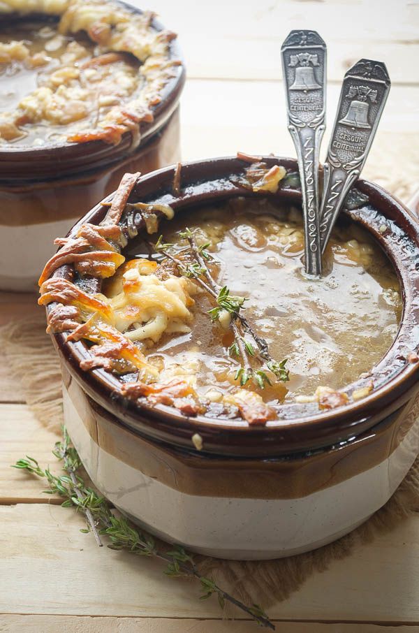 Savory French Onion and Pear Soup is the ultimate comfort food. The rich onion soup is topped with buttery toasted bread and melted Gruyère cheese. The pear is so subtle you won't taste it yet it lends the faintest sweetness that balances the soup beautifully.