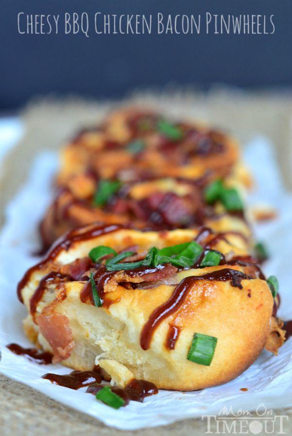 Cheesy BBQ Chicken Bacon Pinwheels make an amazing dinner OR appetizer any night of the week!