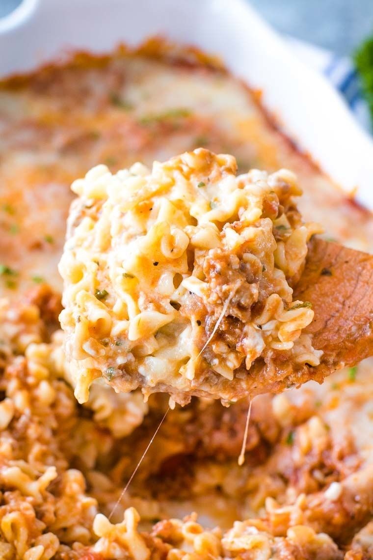 This easy Lasagna Casserole has all the flavors of traditional Lasagna including a delicious meat sauce including ground pork, cheese sauce and pasta! Top it with a little more cheese and you have a delicious dinner recipe. We love the Mafalda pasta especially the kids! It makes a delicious freezer meal or a quick dinner time recipe on a busy weeknight. Every single bite of this Lasagna Casserole is AMAZING and you won’t be able to stop with one plate!