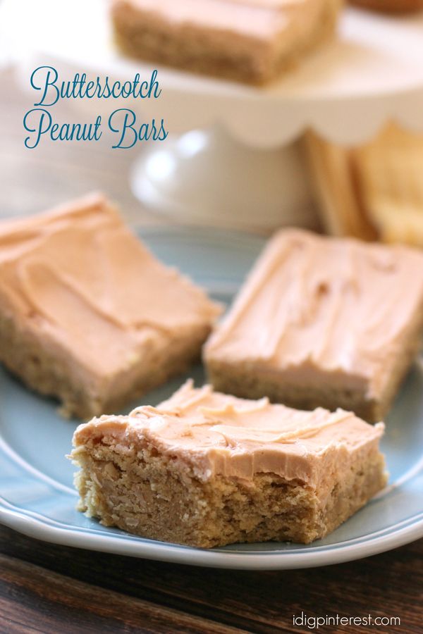 A soft peanut-powder infused sugar cookie type bar spread with butterscotch buttercream frosting. This dessert is completely irresistible!