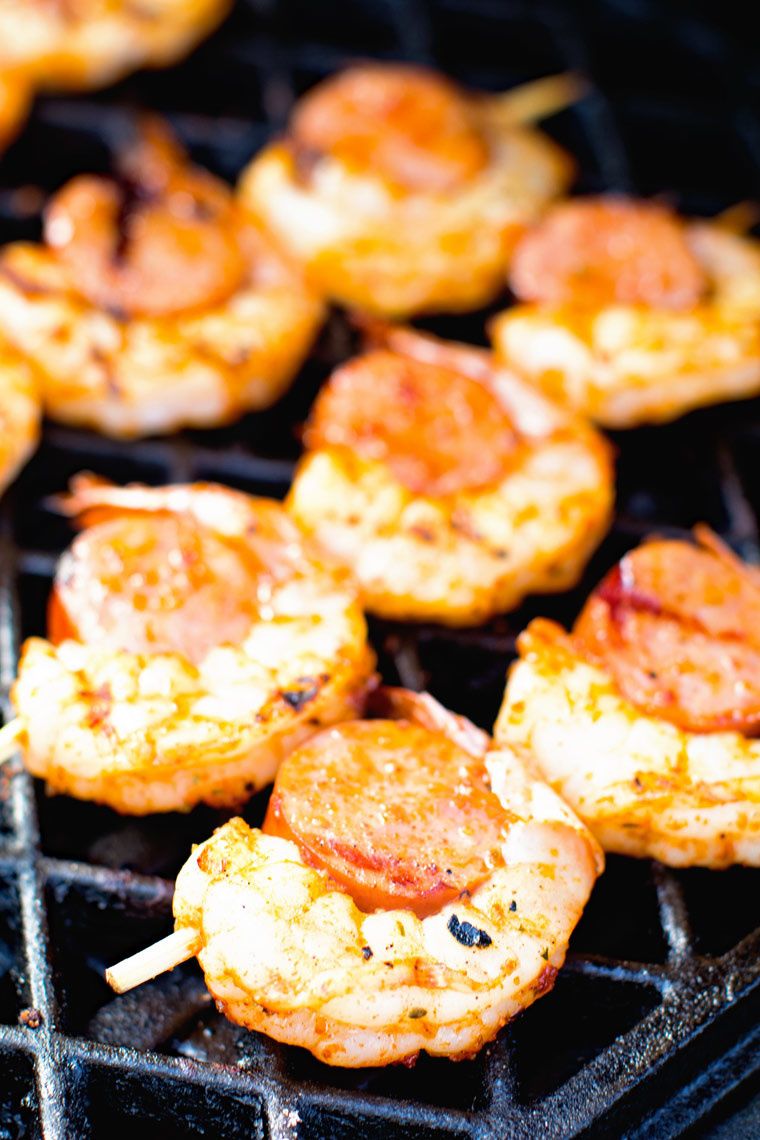 These Sausage and Grilled Shrimp Kabobs are packed with flavor and super easy! They are the perfect way to make dinner on the grill when you are busy yet these skewers are fancy enough to serve at your next BBQ!