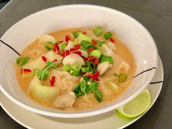 Toon Aug. 04, 2021 05:12PM EST 46 Laksa curry chicken soup www.surprising.recipes Curry laksa chicken soup is an healthy and easy to make meal form South East Asia. In half an hour you can have it in your plate. Try it See the full directions on my site