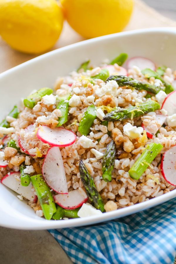 Spring means sunshine (maybe a little rain for some of us), mild temps, and finally a chance to enjoy fresh veggies. Farro Salad with Asparagus, Radishes & Lemon Vinaigrette is the perfect springtime dish. It’s colorful and hearty, and brightens any meal.