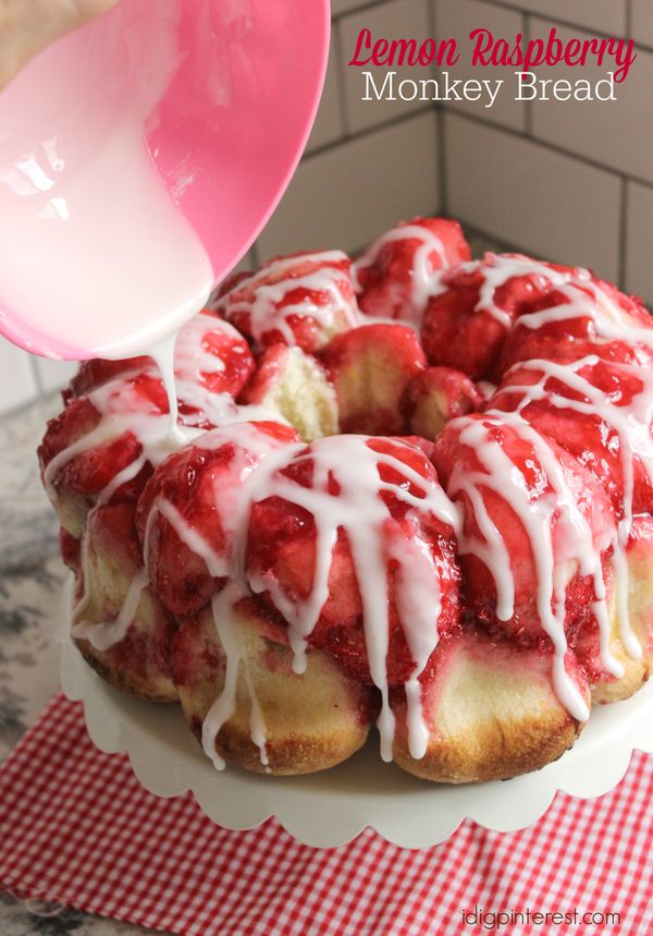 This gorgeous red and white \\\"cake\\\" (a.k.a. pull apart bread) made with sticky lemon raspberry sweet buns is begging to be enjoyed!