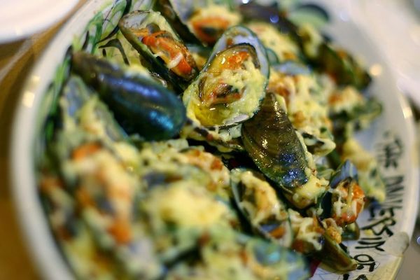 A steaming bowl of mussels will satisfy even the hungriest foodie. This version has garlic, butter and cheese.